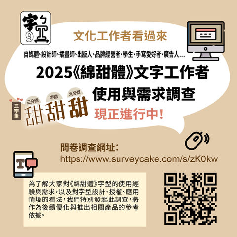 綿甜體,這個家族系列的字型不僅讓你的設計更具創意,讓人看見台灣本土字體設計再度展現創作活力。